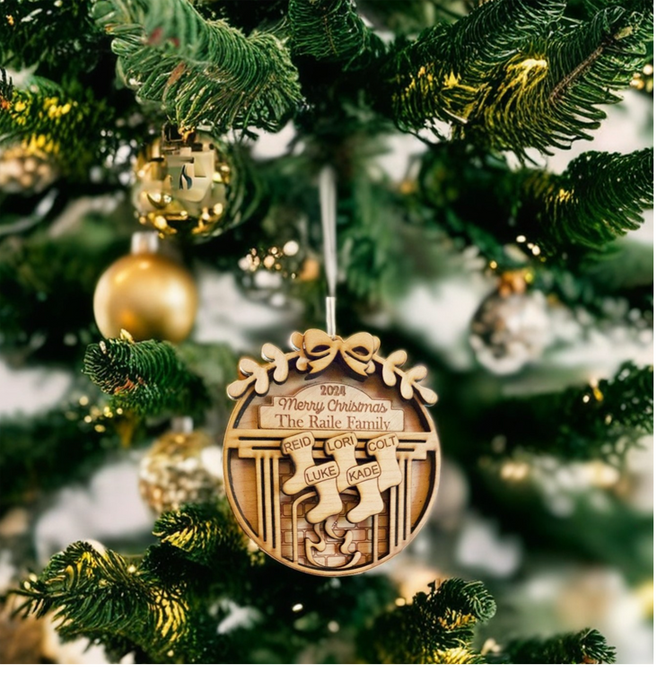 Beautiful addition to any tree, this ornament consists of 4-layers of cherry wood, personalized, and cut to precision. A, family heirloom ornament for many generations.